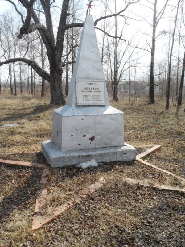 - Обелиск учителю В.И. Новикову, с. Екатеринославка. Учитель В.И. Новиков 28 мая 1918 г. был казнён калмыковцами на станции Вяземская. Обелиск установлен фотография на яндекс-картах